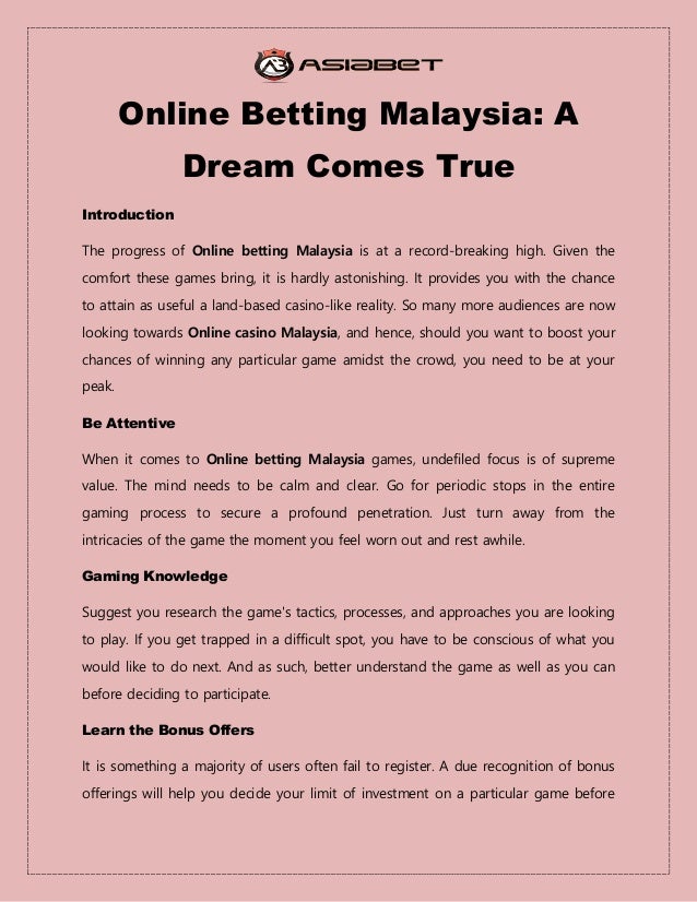 - Home of free bets from the most reliable online sports betting site in Malaysia with exclusive offers and generous bonuses.